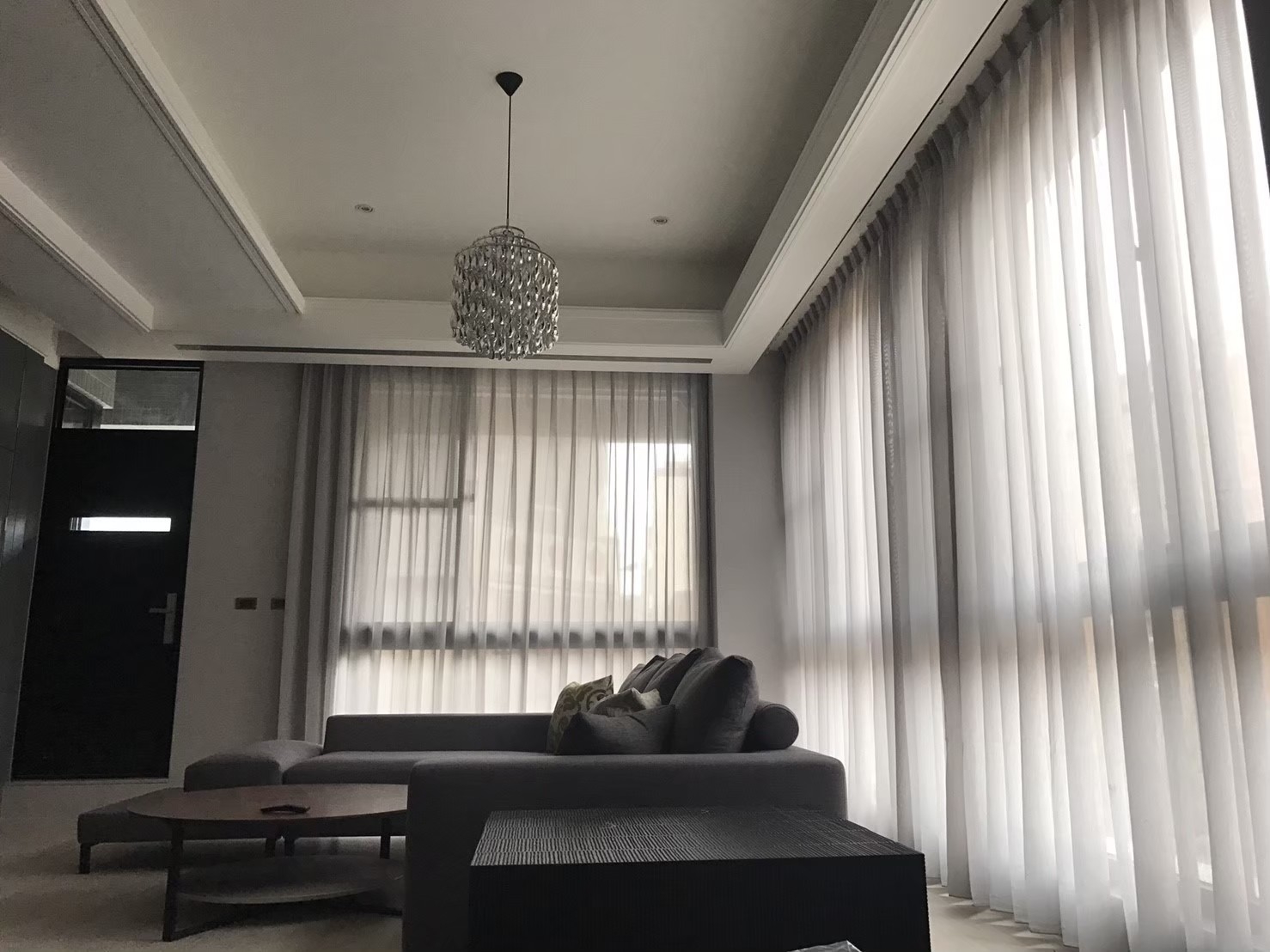 通常白天待在客廳時都會拉開布簾增加室內採光,若有棟距較近的問題,裝上窗紗可以讓光線變得柔和,同時也兼顧隱私,一舉兩得。